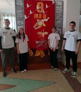 Ребята продумали элементы декорации, чтобы передать атмосферу тех героических лет. Использованы плакаты времен войны, фотографии ветеранов, а также символы Победы – георгиевская лента, красная звезда, вечный огонь. Кадры, запечатленные на фоне фотозоны, стали не просто памятными снимками, но и символом уважения к подвигу советского народа.